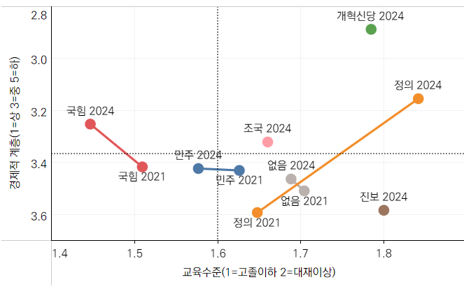 조국혁신당에 쏠린 화이트칼라, 국민의힘과 민주당은 핑크·블루칼라 포진