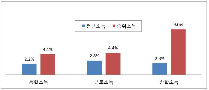 1인당 소득증가율 통합 2.2%, 근로 2.8%, 종합 2.3%, 물가상승률 3.6%에 모두 못미쳐
